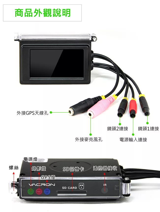 真相 分離式2路機車用行車記錄器 (限量炫黑版主機+夏普CCD紅外線夜視雙鏡頭) 送8G記憶卡
