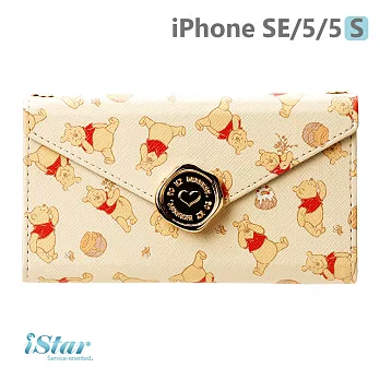 【日本 PGA-iJacket】正版迪士尼iPhone SE-5-5s金色印花扣皮革信封造型側翻式系列(附鏈帶)-維尼096維尼 現金回饋
